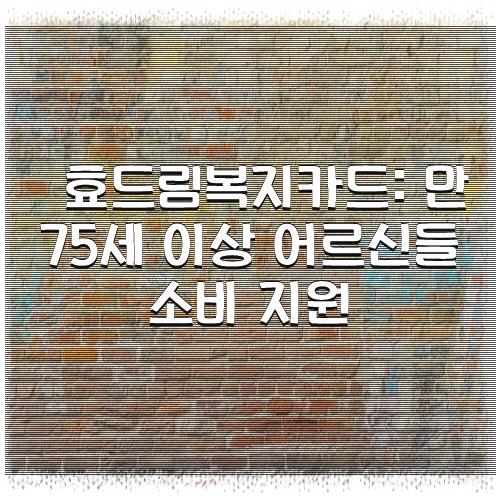 효드림복지카드는 어르신들의 삶을 더욱 풍요롭게 만들어주는 프로그램이다. 만 75세 이상의 어르신들은 꼭 이 기회를 활용하여 소비 지원을 받아보시기를 권장하고 있어요. 효드림복지카드: 만 75세 이상 어르신들 소비 지원 관련내용 확인 해 보시겠습니다.