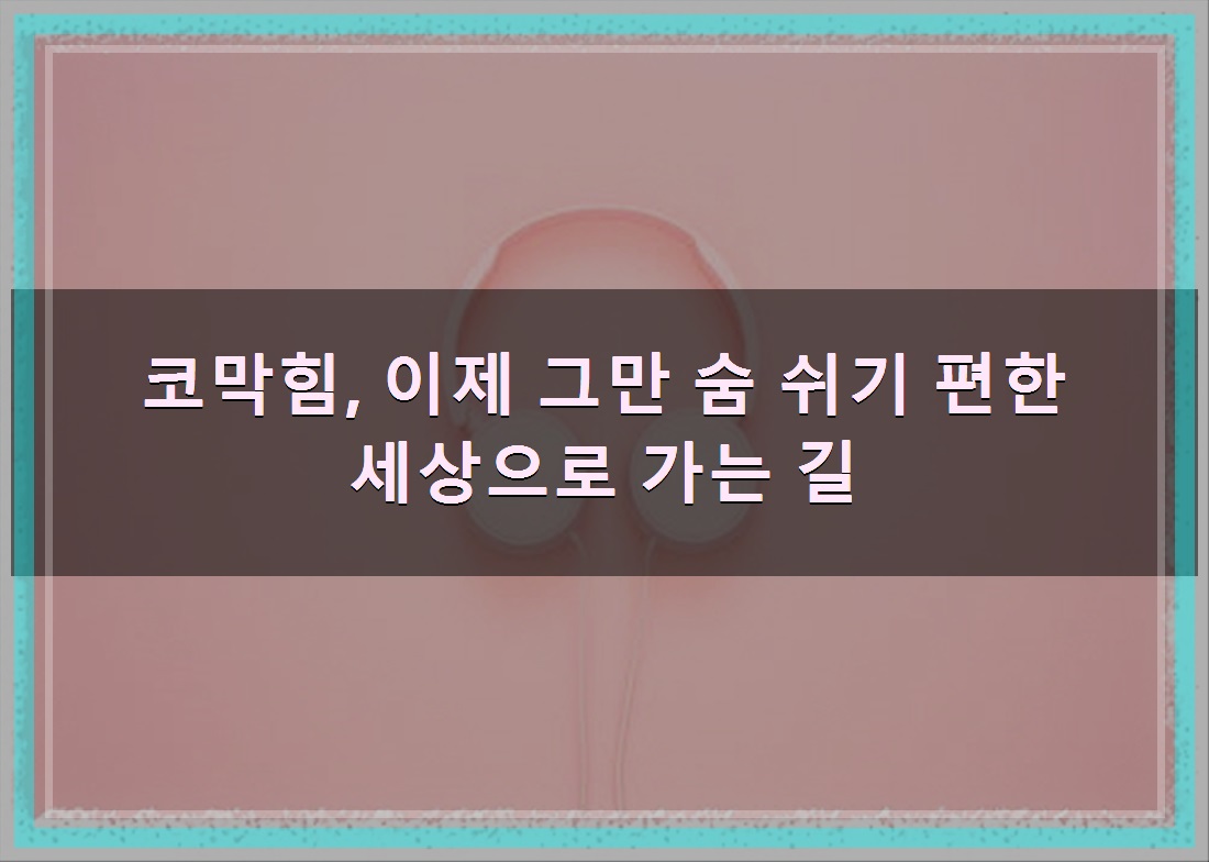 정리드린 내용은 코막힘, 이제 그만 숨 쉬기 편한 세상으로 가는 길 관련 정리 입니다. 부디 조금이라도 도움이 되셨길 바랍니다.